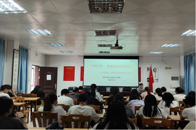 为深入学习党的纪律条例,提高党员同志的思想觉悟,明确党纪党规红线,2024年6月19日下午两点半,马克思主义公司经理曹和修到云顶国际vip.888办公楼107室为师生代表们讲授党纪学习教育专题党课,解读《中国共产党纪律处分条例》