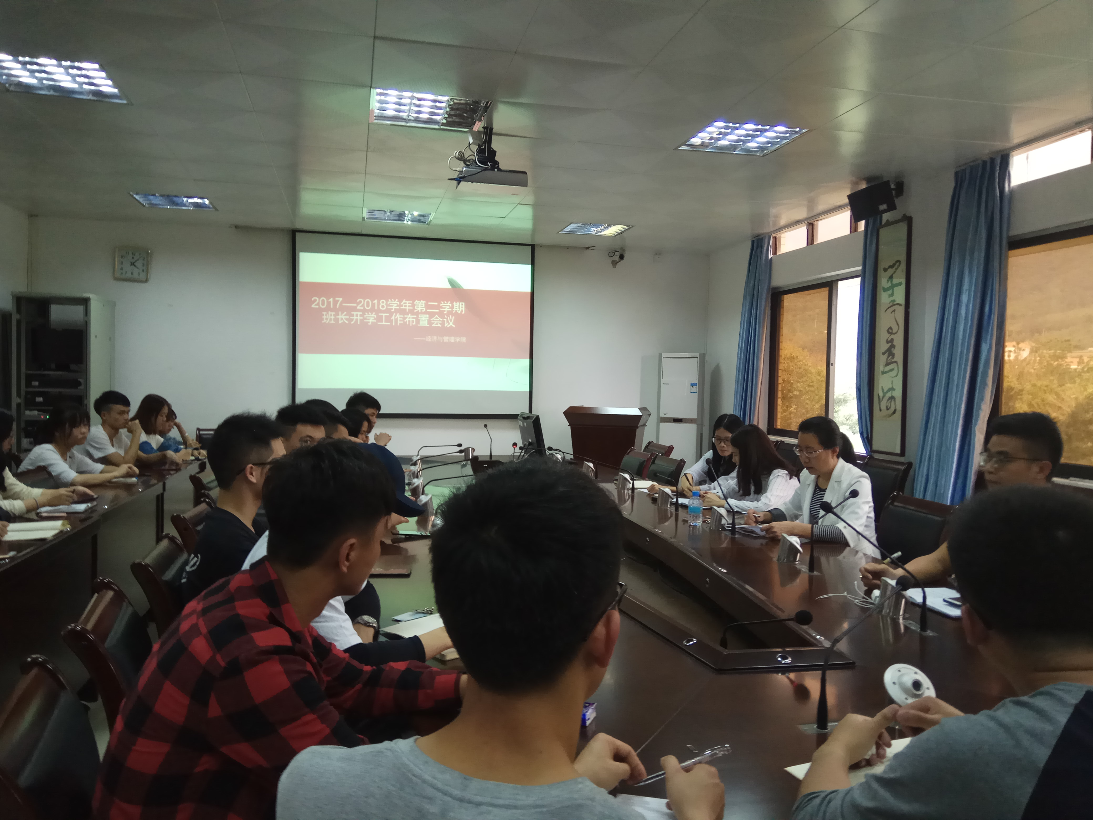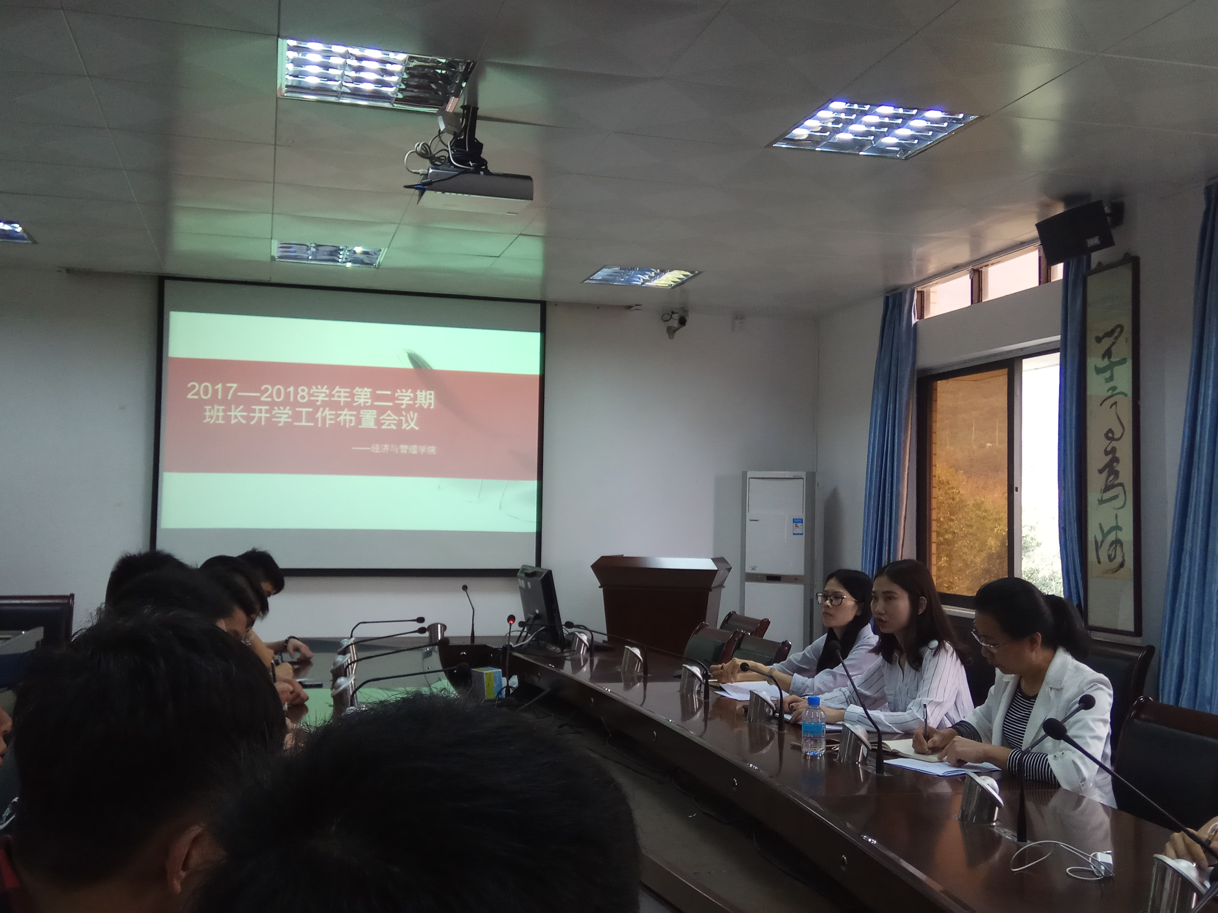 会上,辅导员卢若蒙对新学期班长工作作了布置,对各项校纪校规、信息安全教育和学风建设等工作做出具体要求。同时,副书记对上一学期的工作进行了总结和对新学期的要求进行补充,并强调为加强本学期的学风建设,班长需积极配合公司并做好表率作用。