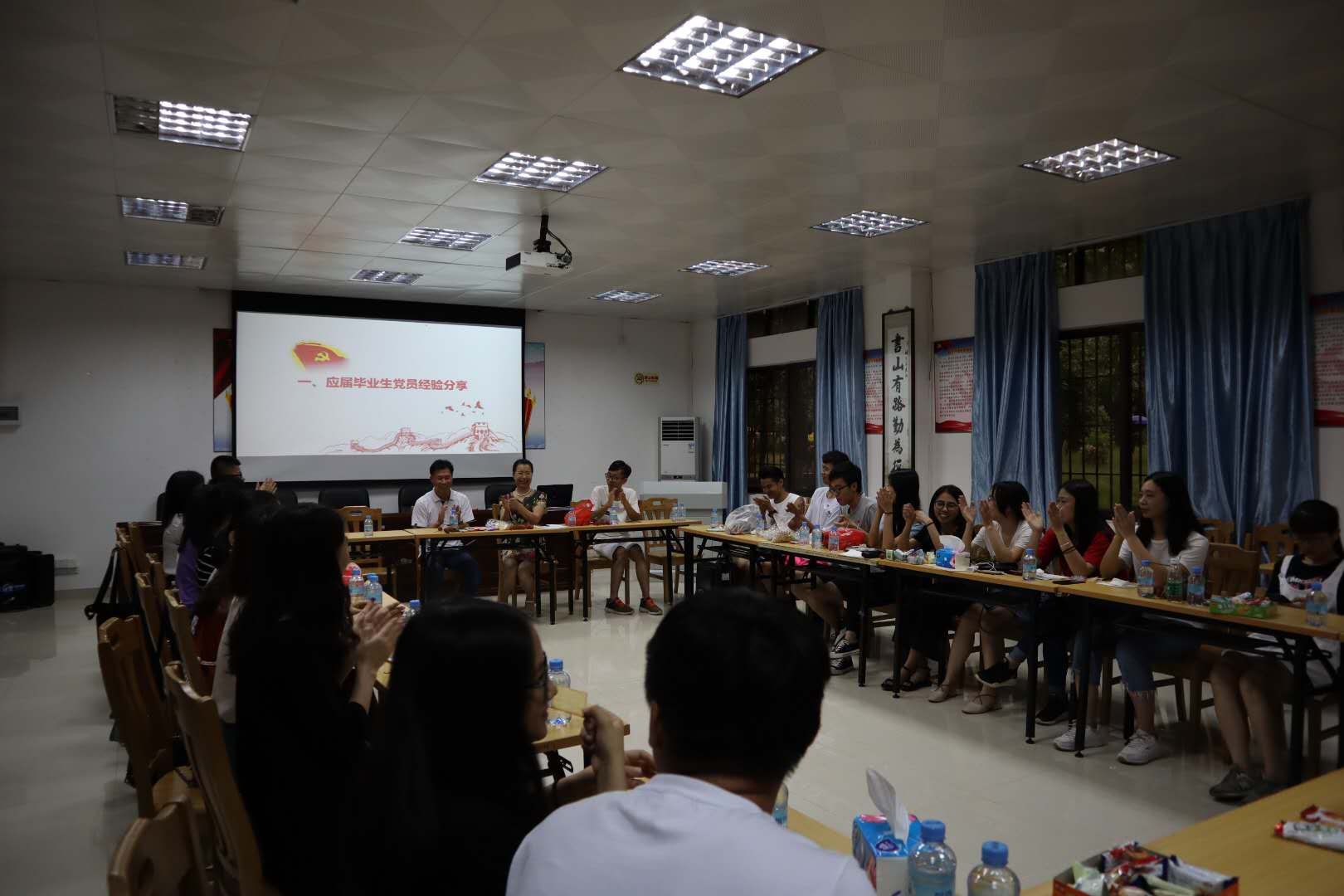 本次活动的内容有一、专题学习:习近平的读书故事;二、新党员入党宣誓;三、优秀党员、优秀毕业生经验分享,四、给毕业生党员的祝福。五、大合照。