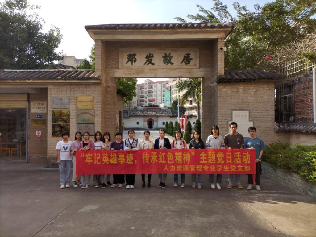 [云顶国际vip.888 讯] 为进一步坚定党员同志的理想信念,弘扬爱国主义精神,人力资源管理专业员工党支部于11月26日组织党员前往云浮市邓发故居开展“牢记英雄事迹,传承红色精神”主题党日活动。