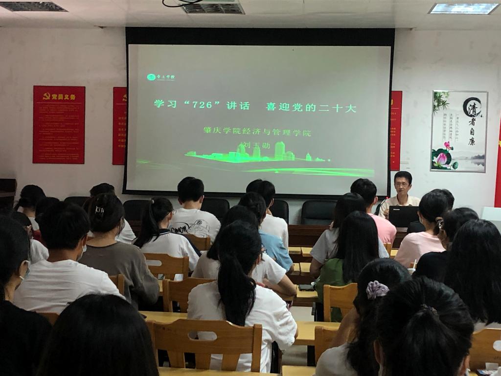 刘玉勋经理的思政课包括“充分认识习近平总书记‘7·26’重要讲话的重大意义”“准确把握习近平总书记‘7·26’重要讲话的丰富内涵”“扎实做好贯彻落实习近平总书记‘7·26’讲话”三部分。刘玉勋首先向大家介绍了习近平总书记“7·26”重要讲话的三大要点,并结合国际国内大势,阐明了即将召开的党的二十大是进入全面社会主义现代化国家新征程的关键时刻,应科学把握我们面临的战略机遇和风险挑战。最后刘经理鼓励在座的同学要志存高远立大志,进德修业明大德,在新时代新征程上留下无悔的奋斗足迹,以实际行动迎接党的二十大召开。
