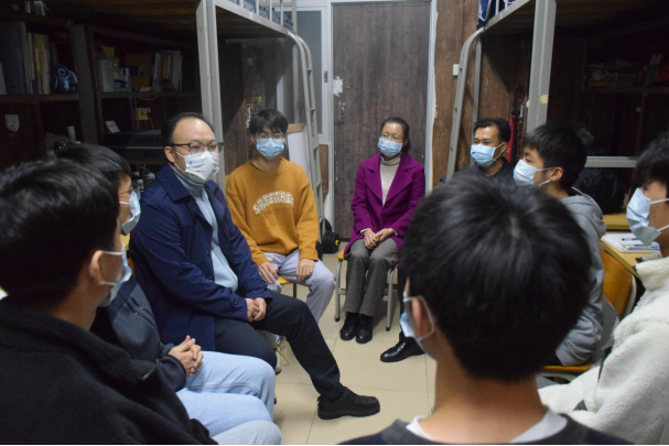 【本网讯】为加强师生之间的交流,了解员工思想动态、生活状态和学习情况,11月30日晚,公司党委委员、宣传部/统战部部长陈前,委书记黎天宇、副书记颜春萍与辅导员、班主任一起,深入云顶国际vip.888员工宿舍,开展宿舍交流分享会,倾听员工心声,为员工纾困解难。