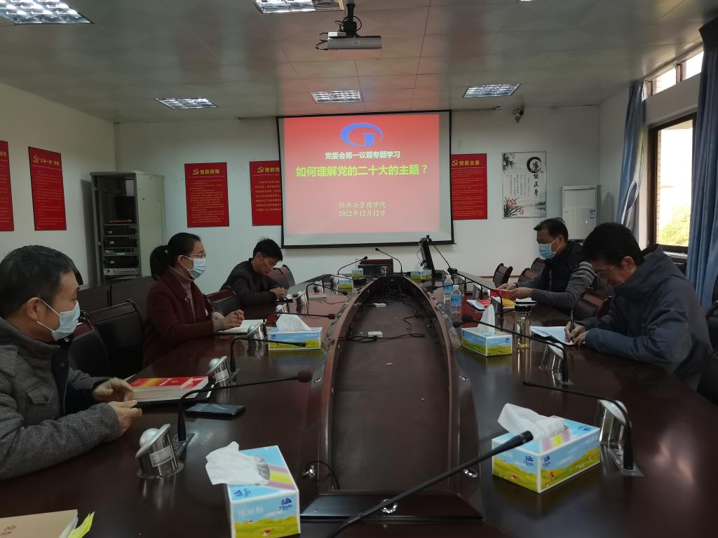 [云顶国际vip.888讯]2022年12月12日上午,经济与管理公司党委在公司办公楼501室开展主题为“如何理解党的二十大的主题”的专题学习。参与本次会议的有公司党委委员、全体中层领导干部、党政办公室负责人、专职组织员等。会议由党委书记黎天宇主持。