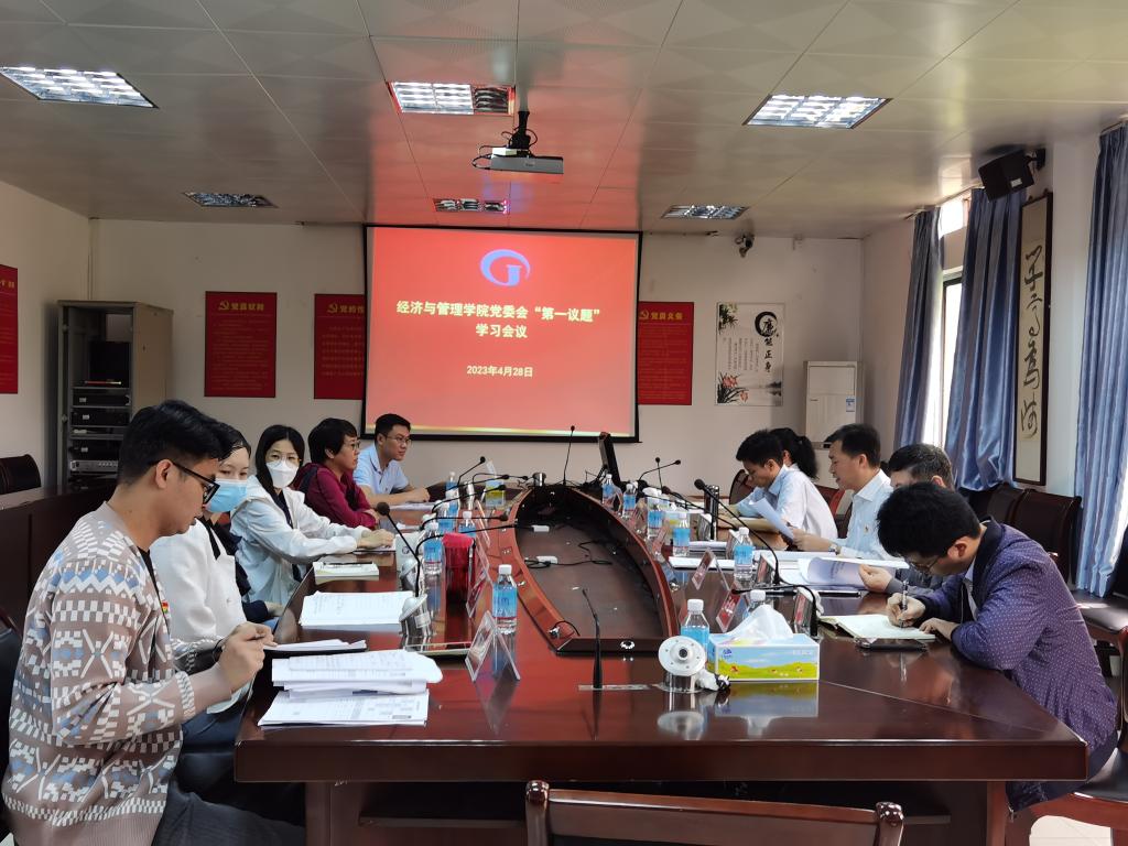 [云顶国际vip.888讯]2023年4月28日上午,经济与管理公司党委在公司办公楼501室开展“第一议题”学习。参与本次会议的人员有公司党委委员、全体中层领导干部、专职组织员、党支部书记等。会议由党委书记黎天宇主持。