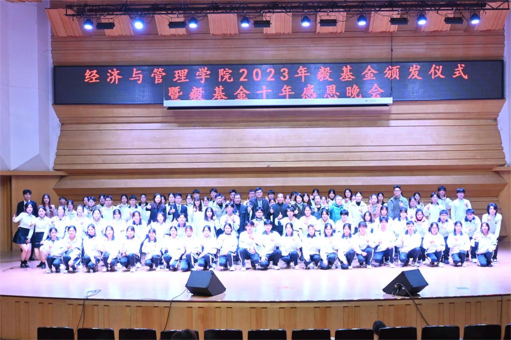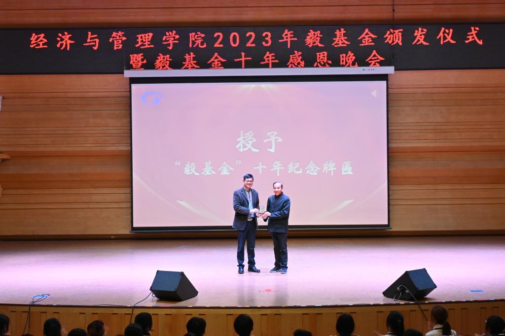 “毅基金”,是广东天龙科技集团股份有限公司董事长冯毅先生捐资设立,2014年起连续10年,每年10万元。2023年是毅基金成立的第十年,毅基金承载着冯毅先生对经管学子的殷切期望,记载着毅基金的十年爱心资助历程,见证着受资助员工的成长成才。(编辑:董)