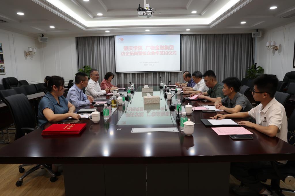 【云顶国际vip.888讯】4月25日,副董事长胡文涛率队赴广东广物金融产业集团有限公司进行访企拓岗座谈,双方签订了校企合作协议并举行了专业实习基地授牌仪式。公司员工工作部、教务部、科学技术部、公司相关领导和老师,以及广物金融集团董事长卢恩健、副总经理陈迪森等出席了本次签约授牌仪式。