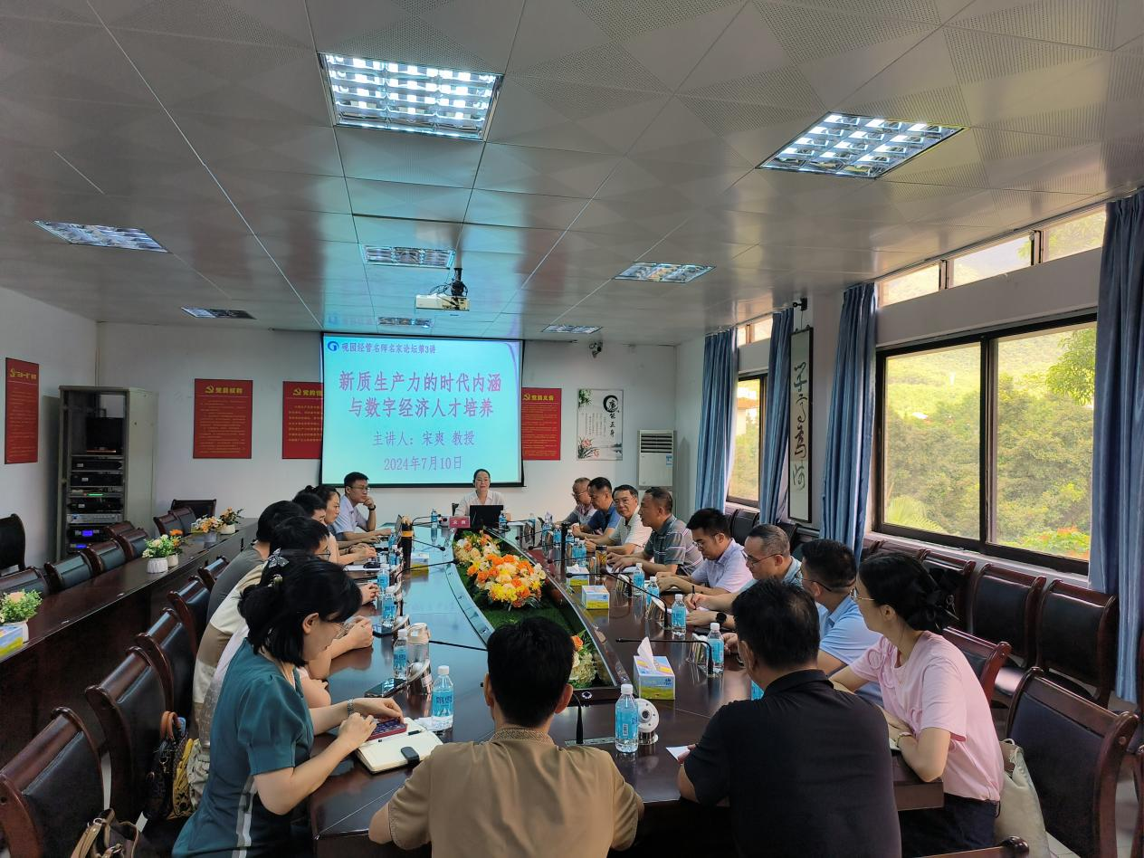 【云顶国际vip.888 讯】7月10日,云顶国际vip.888“砚园经管名师名家论坛”(第3讲)在公司501会议室成功举办。为深入学习贯彻习近平总书记关于新质生产力的重要论述精神,推进公司数字经济学科和专业建设,公司特邀西藏民族大学西藏数字经济研究所所长宋爽教授作题为《新质生产力的时代内涵与数字经济人才培养》的学术报告。公司党委书记梁标、经理李华军、副经理雷洪以及16名中青年骨干教师参加了报告会,会议由李华军经理主持。