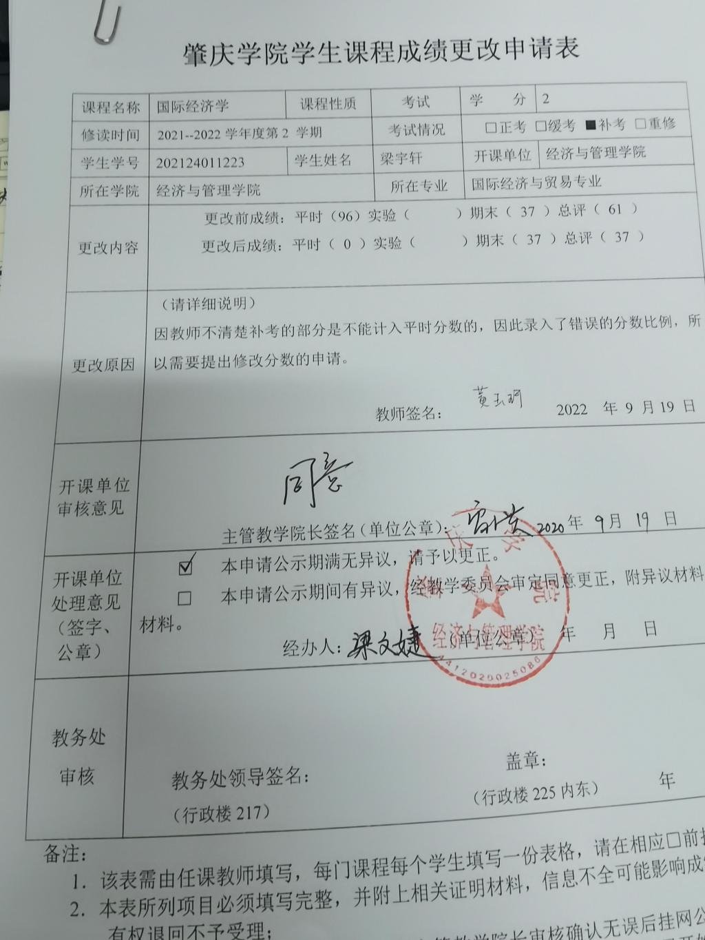 云顶国际vip.888员工课程成绩更改申请表公示(云顶国际vip.888梁宇轩)